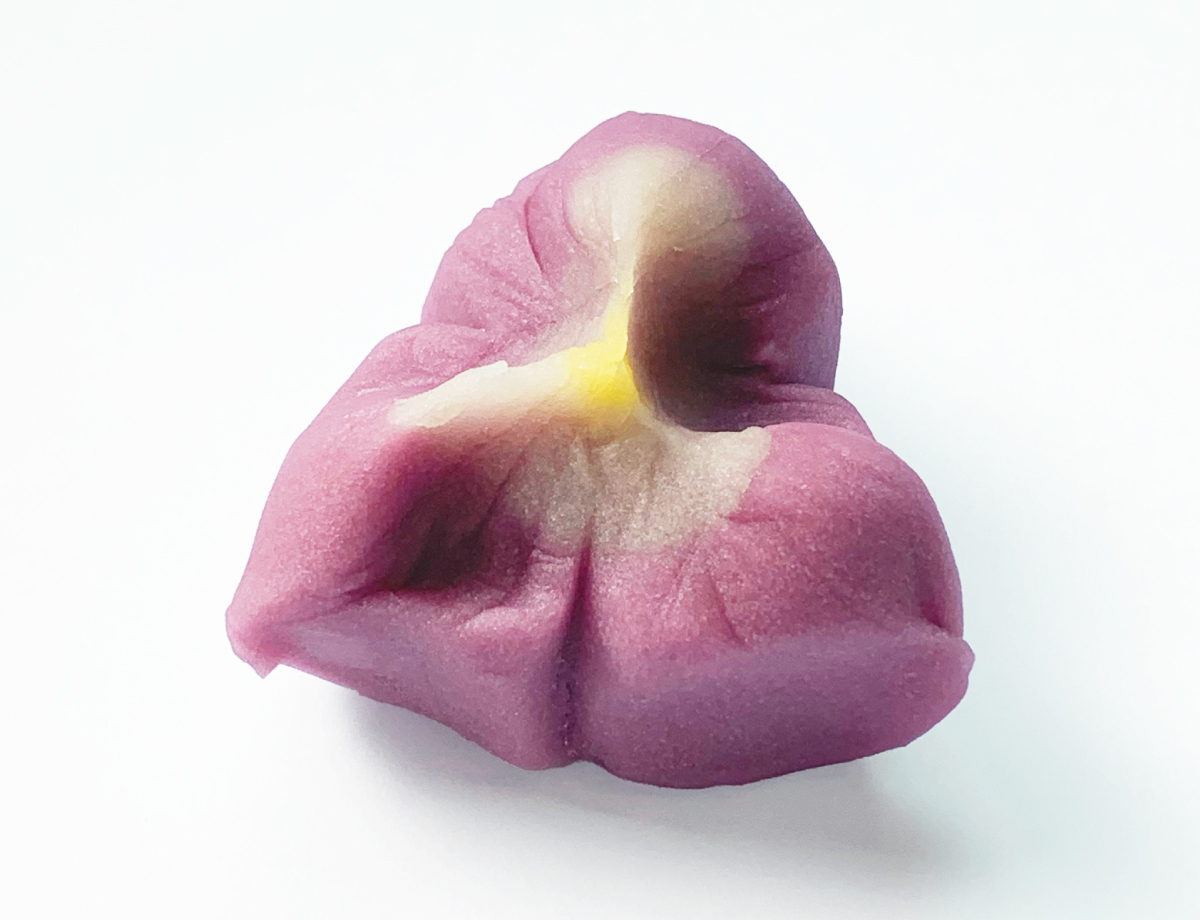 凛として気品ある紫の花をつける菖蒲を煉切で表現しました。